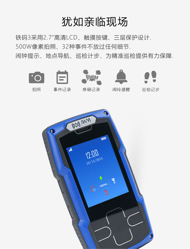 鐵碼3采用2.7“高清LCD、觸摸按鍵、三層保護(hù)設(shè)計(jì)